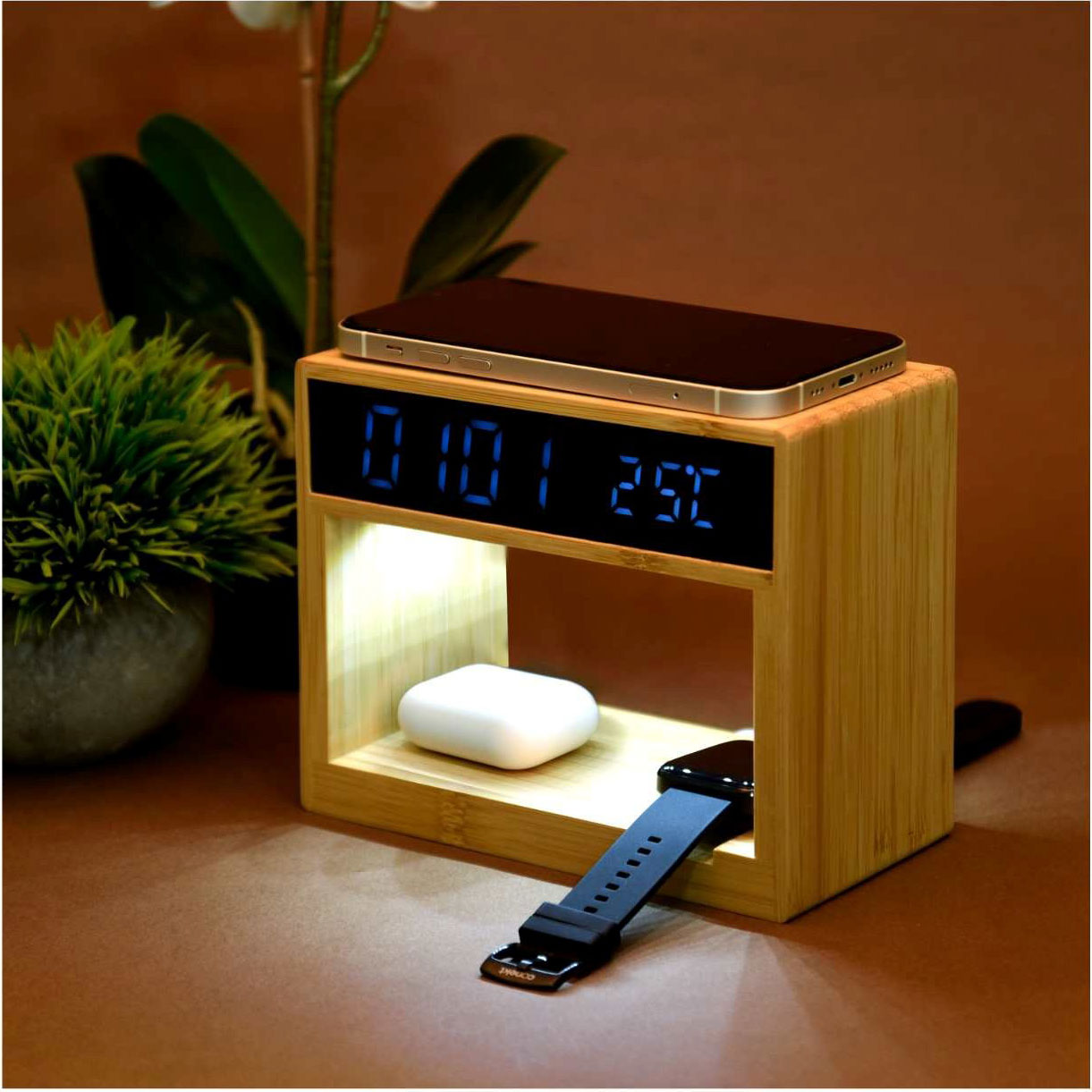 Desk clutter is a thing of the past. This multifunctional unit combines wireless charging, time display, alarm clock, USB ports, and even a built-in drawer — a brilliant way to upgrade productivity and organisation for professionals.