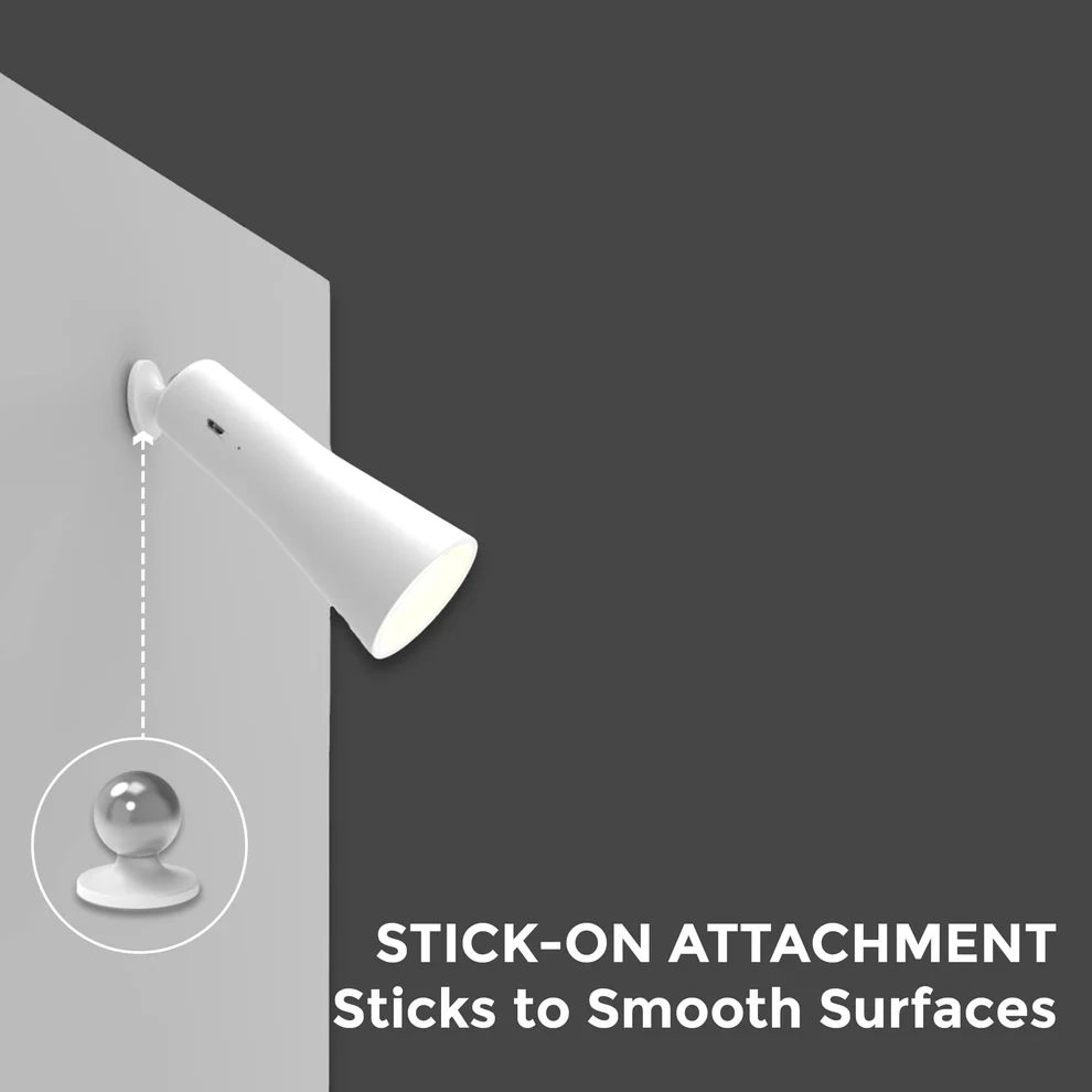 It also comes with a stick-on attachment that allows you to stick it on any smooth surface to use it as a spotlight.