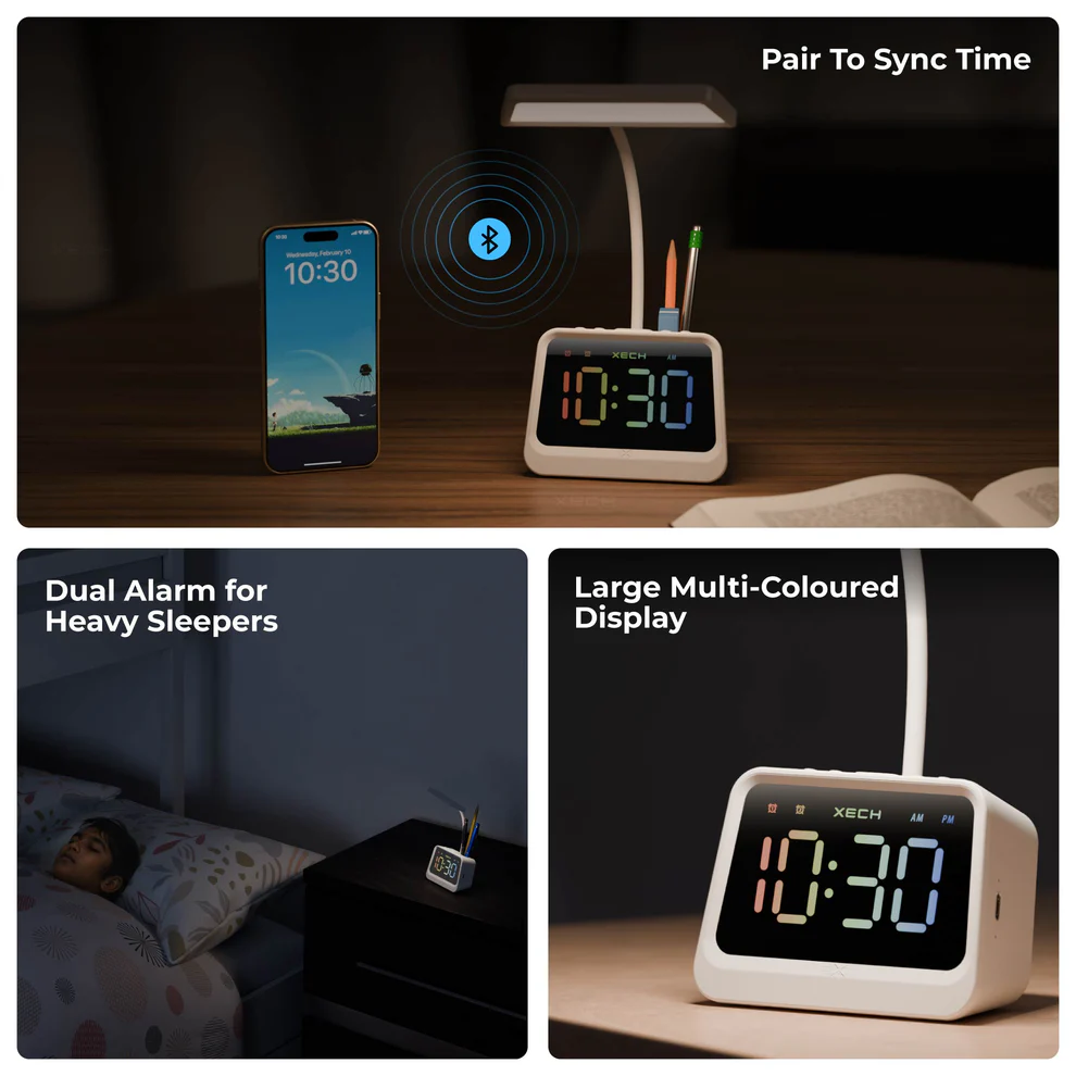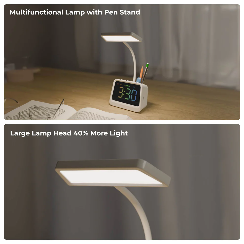 The XECH Prism is a smart all-in-one solution that brings lighting, timekeeping, and organization into a sleek design. It features a rechargeable lamp with dimmable warm and white light, a pen stand to keep your desk neat, and a digital clock with dual alarms.