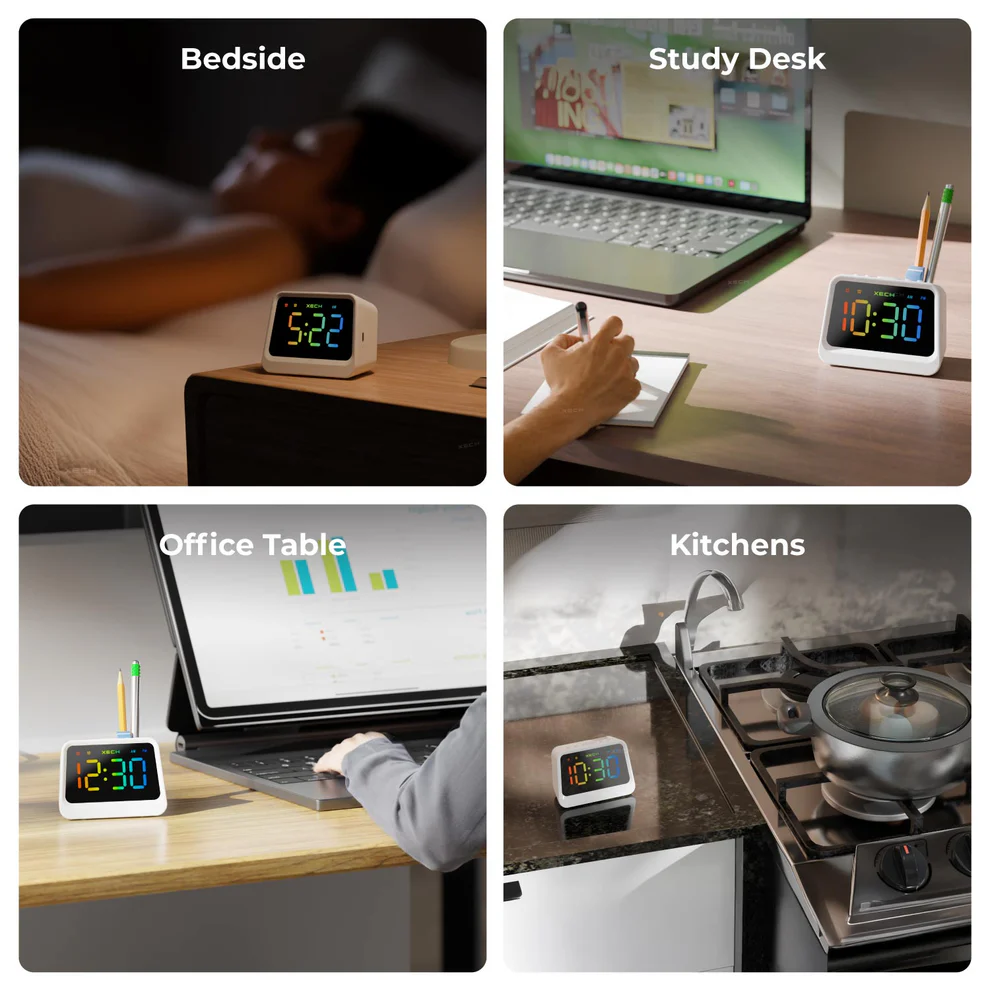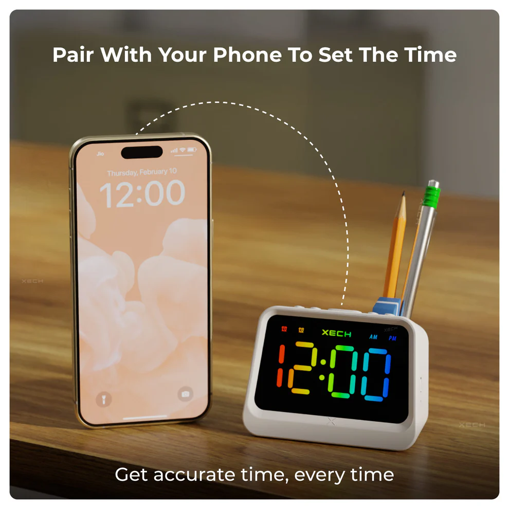 The XECH PRISM Lite is more than a clock – it’s your desk’s new best friend. Featuring dual alarms, a multicolor display, and Bluetooth-enabled auto time sync, it brings both functionality and flair to your study, office, or bedside.