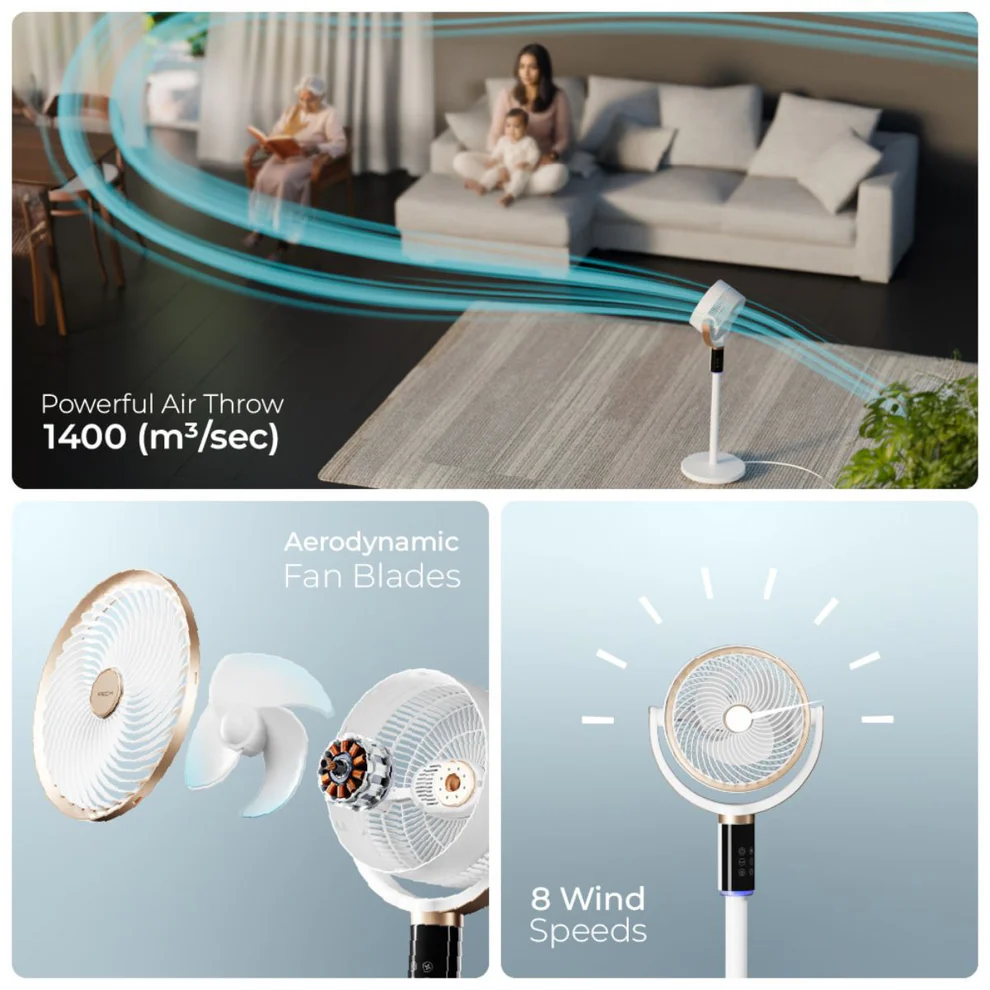 8 Wind Speeds: Offers customisable airflow intensity to suit your comfort needs.