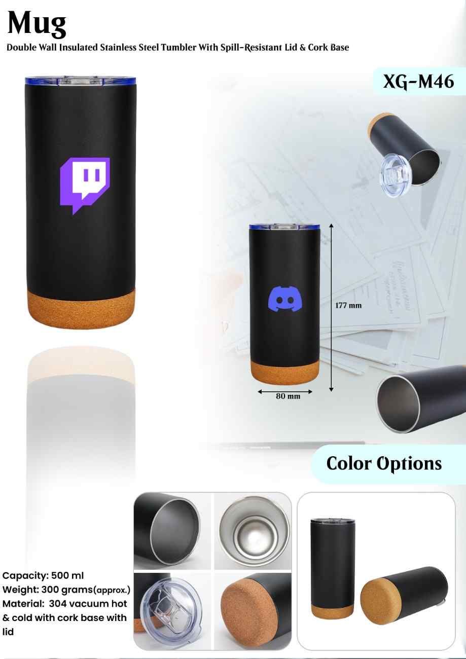 H228 – Oxford: Stainless Steel Double wall Coffee mug with Round handle | Leakproof | Capacity 460ml approx